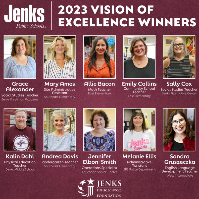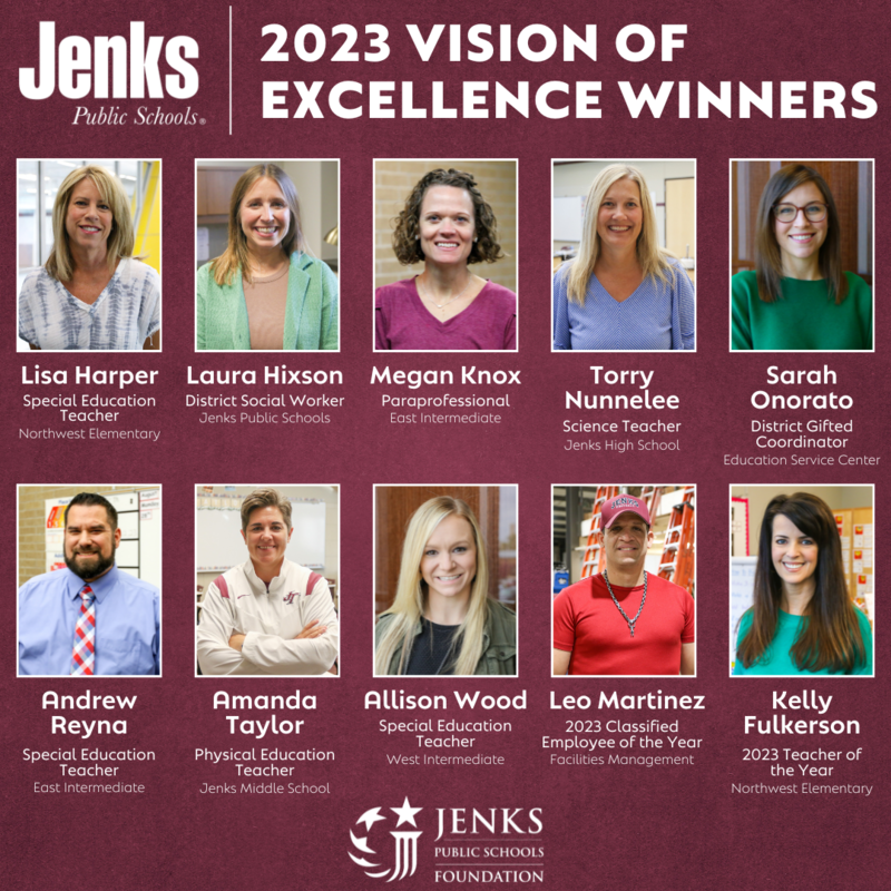 Congrats to all of the 2023 winners, and thanks for all you do for our students and our sites! Thank you to the Jenks Public Schools Foundation for recognizing our employees and making this program possible!